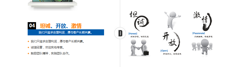 第二屏的目標主要是告訴目標客戶,我們的產品與服務。除了單獨的產品外,還有系統性地解決方案,協助客戶利益最大化實現。JS特效方便用戶選擇與體驗,產品圖片展示很重要。