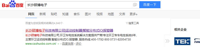 從網站收錄情況來看,不到3個月的時間內,以“長沙碩博電子”為檢索詞,即可在首頁首屏看到網站信息。