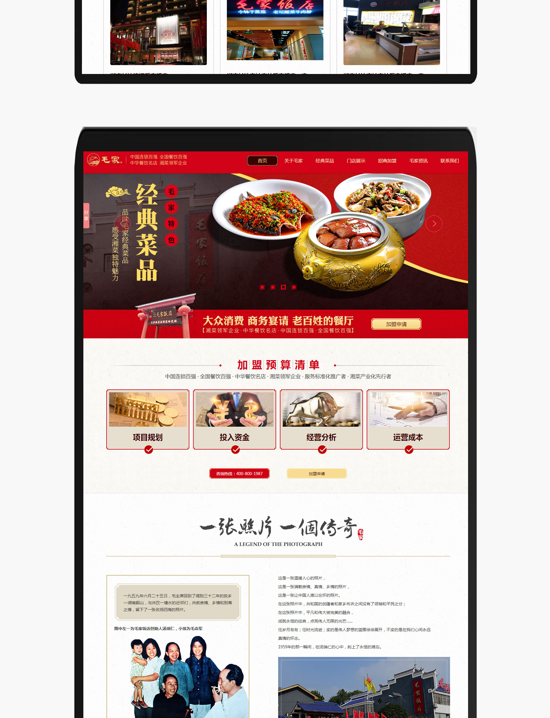 定位上,網(wǎng)站的主體受眾多為餐飲投資人,整體內(nèi)容貫穿營銷邏輯,多次運用了詢盤提醒與營銷工具,把毛家飯店的品牌特色、數(shù)據(jù)實力、招商政策等信息傳遞給訪客。