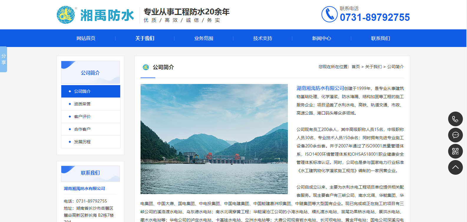網站主欄目:網站首頁、關于我們、業務范圍、技術支持、新聞中心、聯系我們