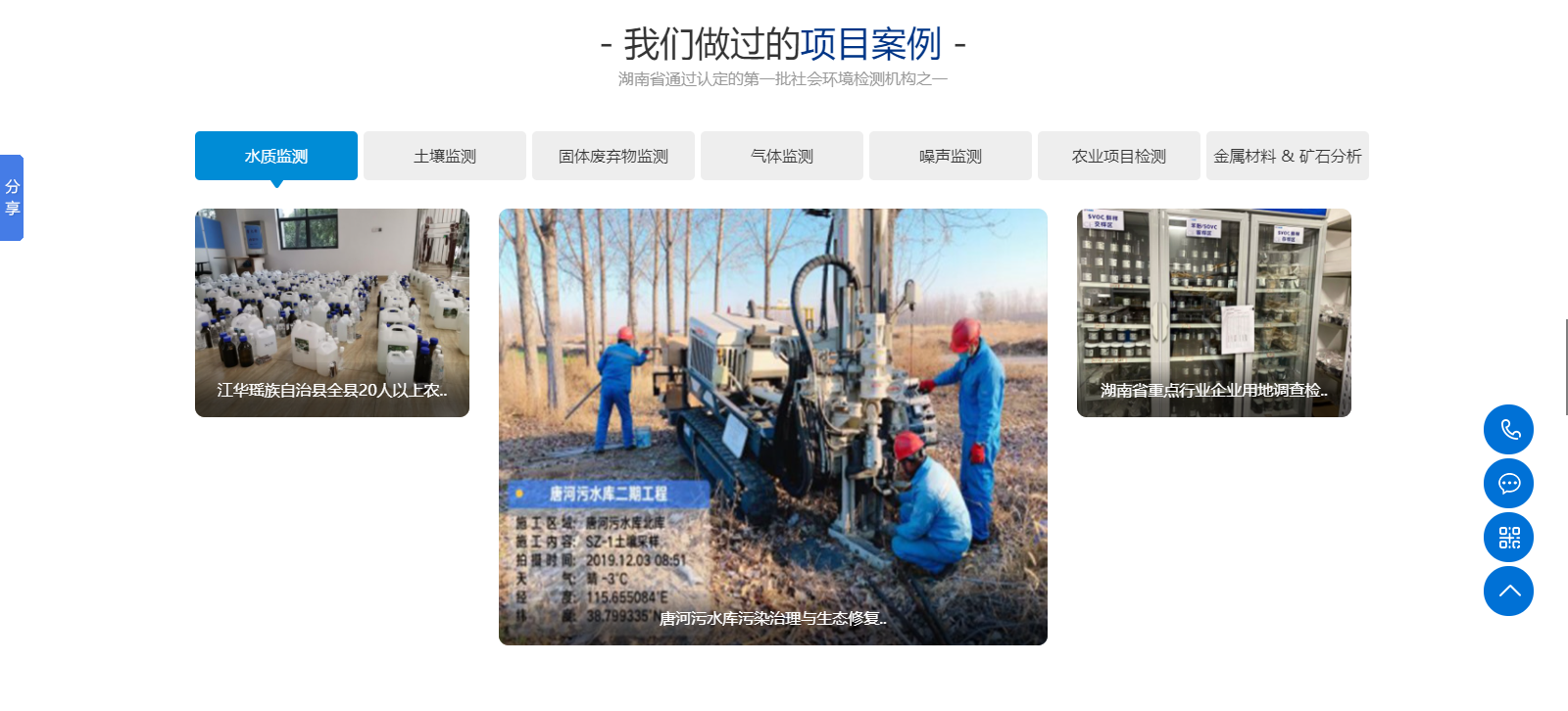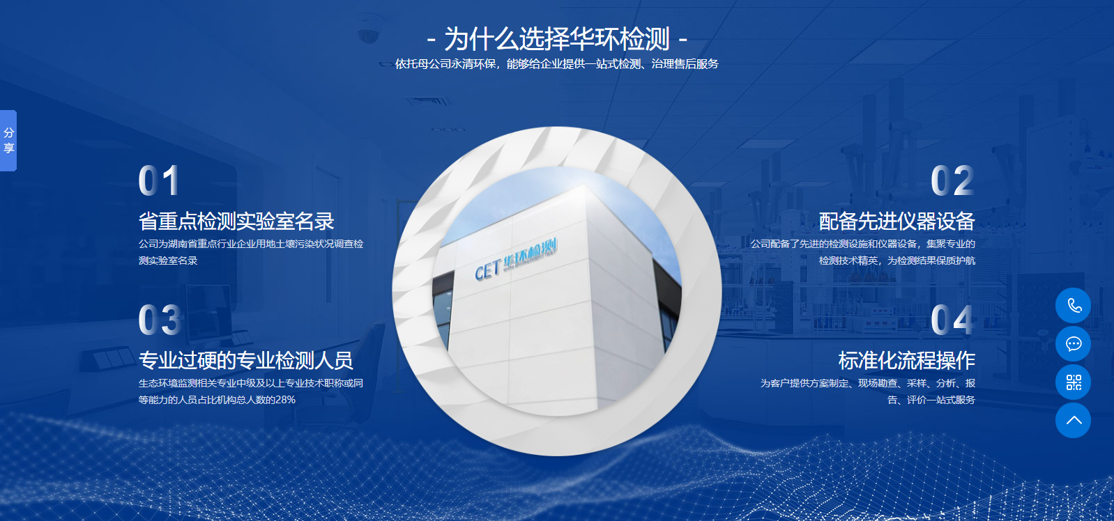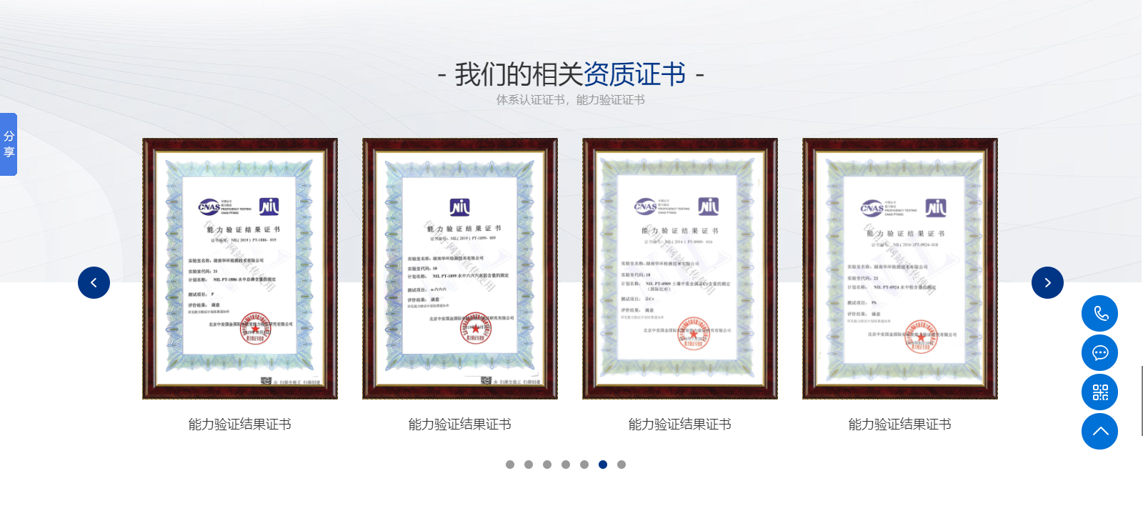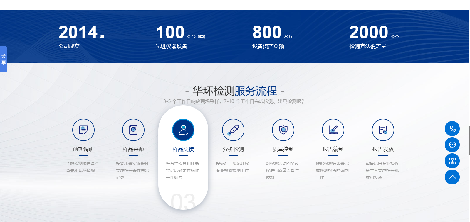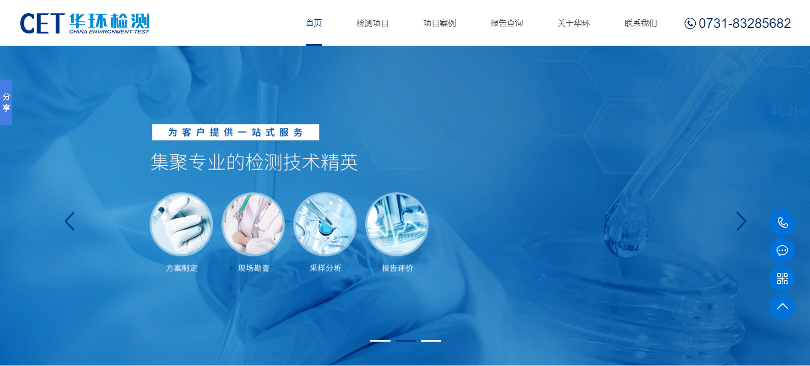 網站主欄目:首頁、檢測項目、項目案例、報告查詢、關于華環、聯系我們