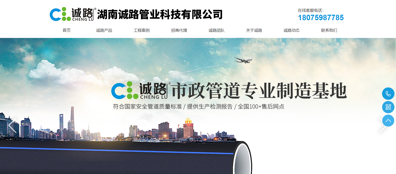 網站主欄目:首頁、誠路產品、工程案例、招商代理、誠路團隊、關于誠路、誠路動態、聯系我們