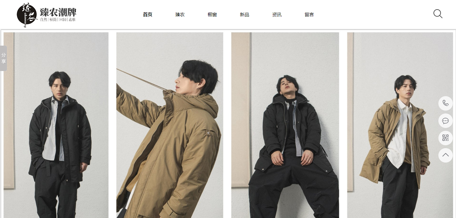 網站主欄目:首頁、臻農、櫥窗、新品、資訊、留言