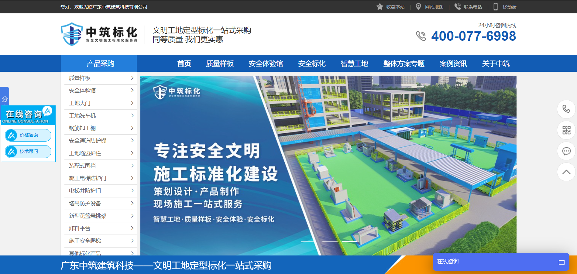 公司主營智慧工地管理系統、工法樣板展示區、實體工地安全體驗館、VR工地安全體驗館、鋼筋/木工加工棚、施工安全通道、工地全自動洗車機、新式施工圍擋、工地臨邊防護欄、樓梯護欄、塔吊護欄、施工電梯防護門、樓層防護板、電梯井防護門、電梯井操作平臺、配電箱防護棚、施工安全爬梯、鋼筋堆場、卸料平臺、新型工字鋼懸挑架、建筑垃圾轉運系統設備、鋼筋腳踏網、工地消防柜、微型消防站、塔吊檢修平臺、塔吊防攀爬、建筑U型螺桿、建筑爬架防護網、剛性止水套管、主體外架警示帶、樓梯護角、溝蓋板、地鐵走道板等各種施工安全防護產品。標化產品選取國標鋼材,用料足,采用靜音噴涂烤漆工藝,色彩鮮艷不易褪色;安裝拆卸便捷,省時省力,且多數可重復使用。