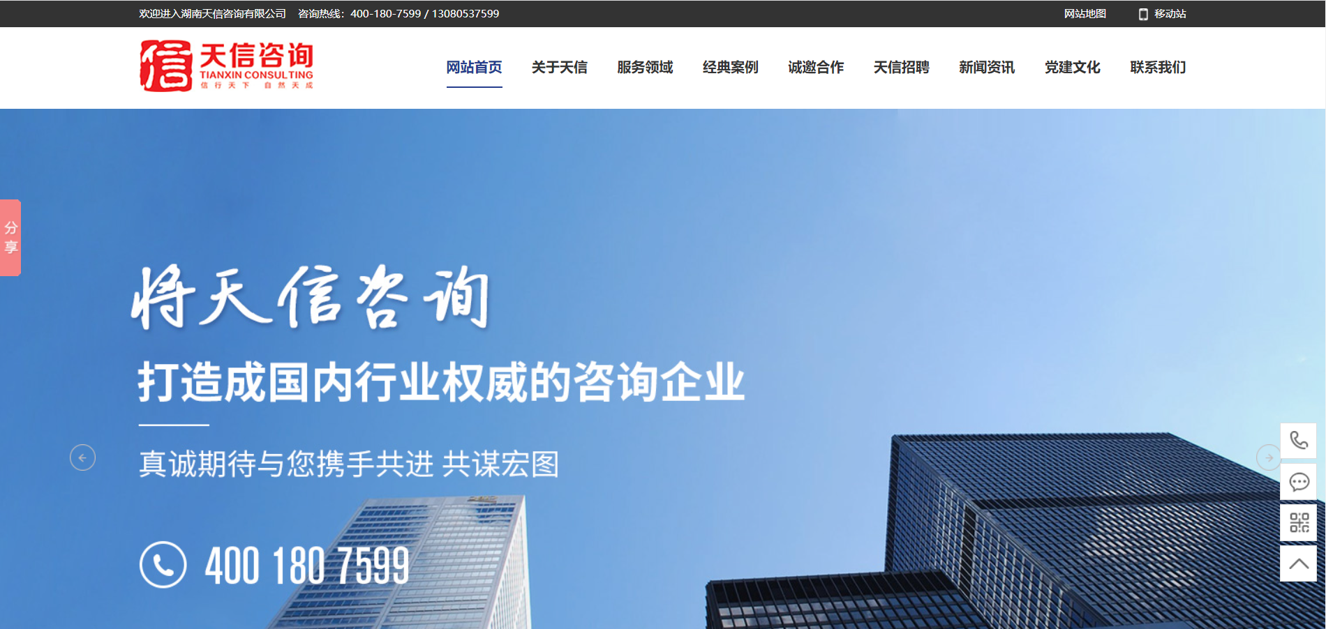 湖南天信咨詢有限公司是一家復合型專業咨詢服務機構,始創于2004年。天信咨詢順應時代變化、大膽創新服務,用謹慎的態度執業、用勇敢的態度拓展,歷經十余年的發展壯大,目前已成為湖南省內執業領域全面覆蓋的咨詢服務機構之一,2020年營業收入過億。下設天信工程項目管理有限公司(甲級)、天信房地產評估有限公司(一級)、湖南天信興業會計師事務所有限公司、湖南天信稅務師事務所有限公司(AA級)、北京中證天通會計師事務所(湖南分所)、湖南天信經緯科技有限公司、湖南希爾得拍賣有限公司,旨在為所有客戶提供全程一站式專業服務!