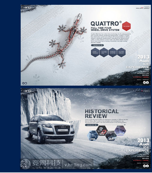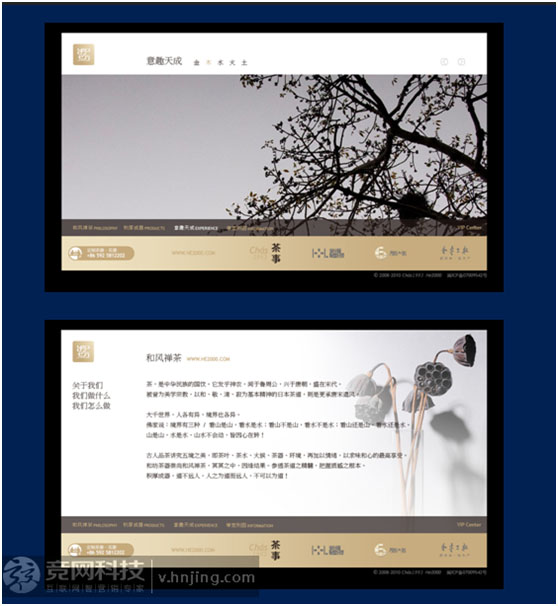 發(fā)掘首頁(yè)的內(nèi)涵 : 如果首頁(yè)所表達(dá)的主題很大,那內(nèi)頁(yè)所選擇的圖案就要小。這種處理方法可以產(chǎn)生另外一種對(duì)比:主題的大和小,視覺(jué)的遠(yuǎn)和近。為了使內(nèi)外能夠產(chǎn)生協(xié)調(diào)一致的視覺(jué)效果,我們首先可以將首頁(yè)的字體照搬進(jìn)來(lái),內(nèi)頁(yè)與首頁(yè)在排版上是對(duì)應(yīng)的,都應(yīng)具有相同的水平中心線。