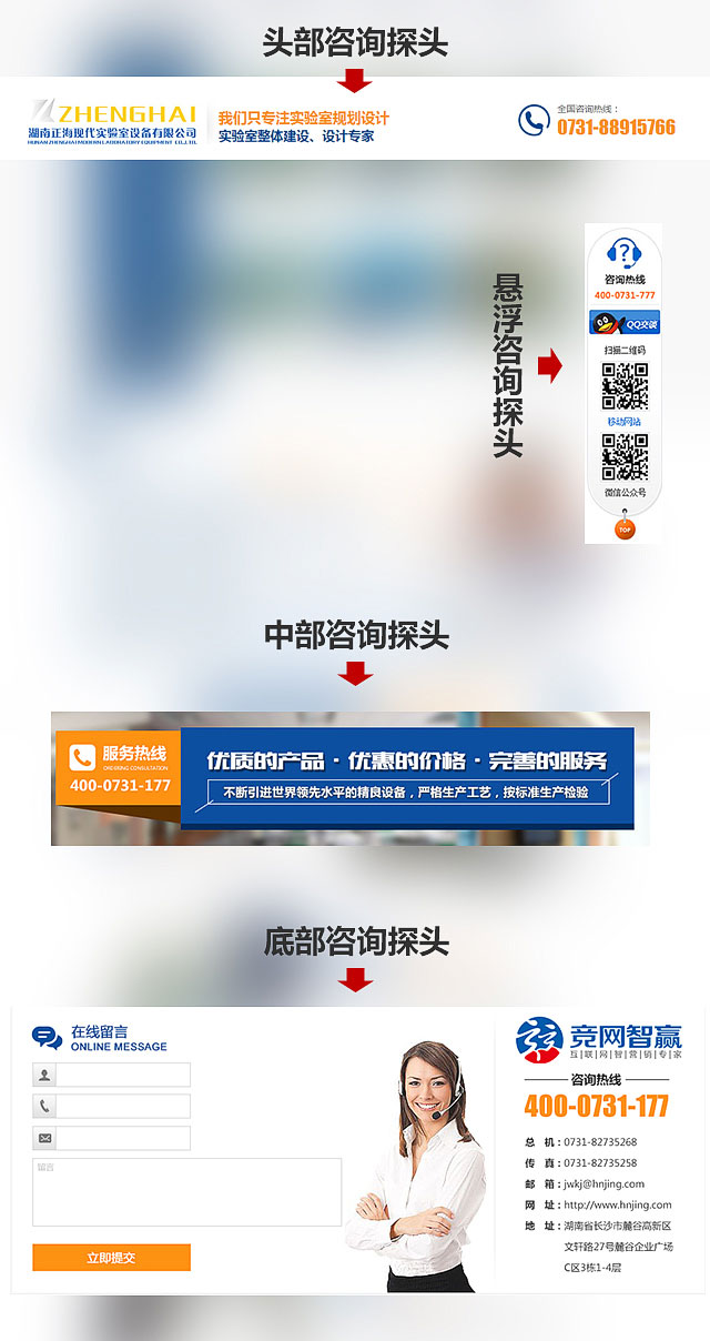 五、 網(wǎng)站行動力:主動一點,邀請用戶采取行動的。行動力表現(xiàn)包括,電話、按鈕、浮動窗口、留言表格等,在恰當?shù)奈恢梦庀蛴脩簦偈鼓切W(wǎng)站有一定理解和信任的訪客采取行動。