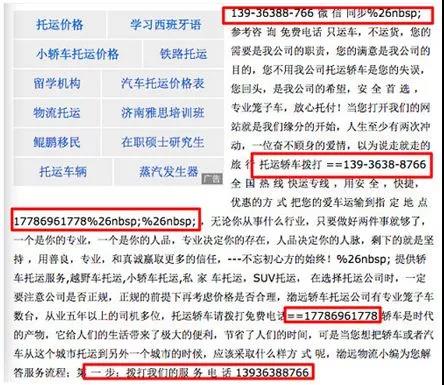 3、正文內容不完整,不符合語義,頻繁留聯系方式;(以下為百度公布案例)