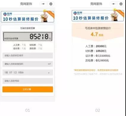 1、免費報價輸入面積匹配生成房屋戶型,輸入手機號碼,提交后自動按照每平米()裝修價格計算,生成房屋裝修初步總報價,細分到材料費、人工費、設計費、質檢費。