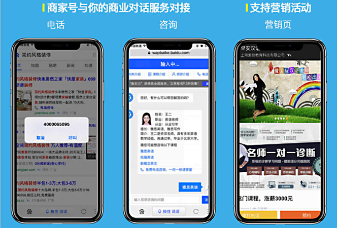 在常規百度推廣鏈路中,百度在客戶決策周期中僅在前期充當潛客導流的角色,后續的各個營銷環節無法把控,大量未通過點擊、咨詢進行轉化的流量也隨之流失。為了解決這一問題,商家號應運而生。