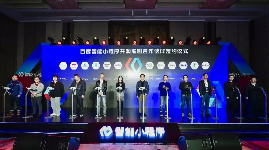 ▲2018年12月20日,百度在北京正式成立百度智能小程序開源聯盟,包括愛奇藝、快手、WiFi 萬能鑰匙、58、汽車之家、攜程、萬年歷、獵豹移動、百度視頻、寶寶巴士、卓易等 12 家企業與百度正式簽約