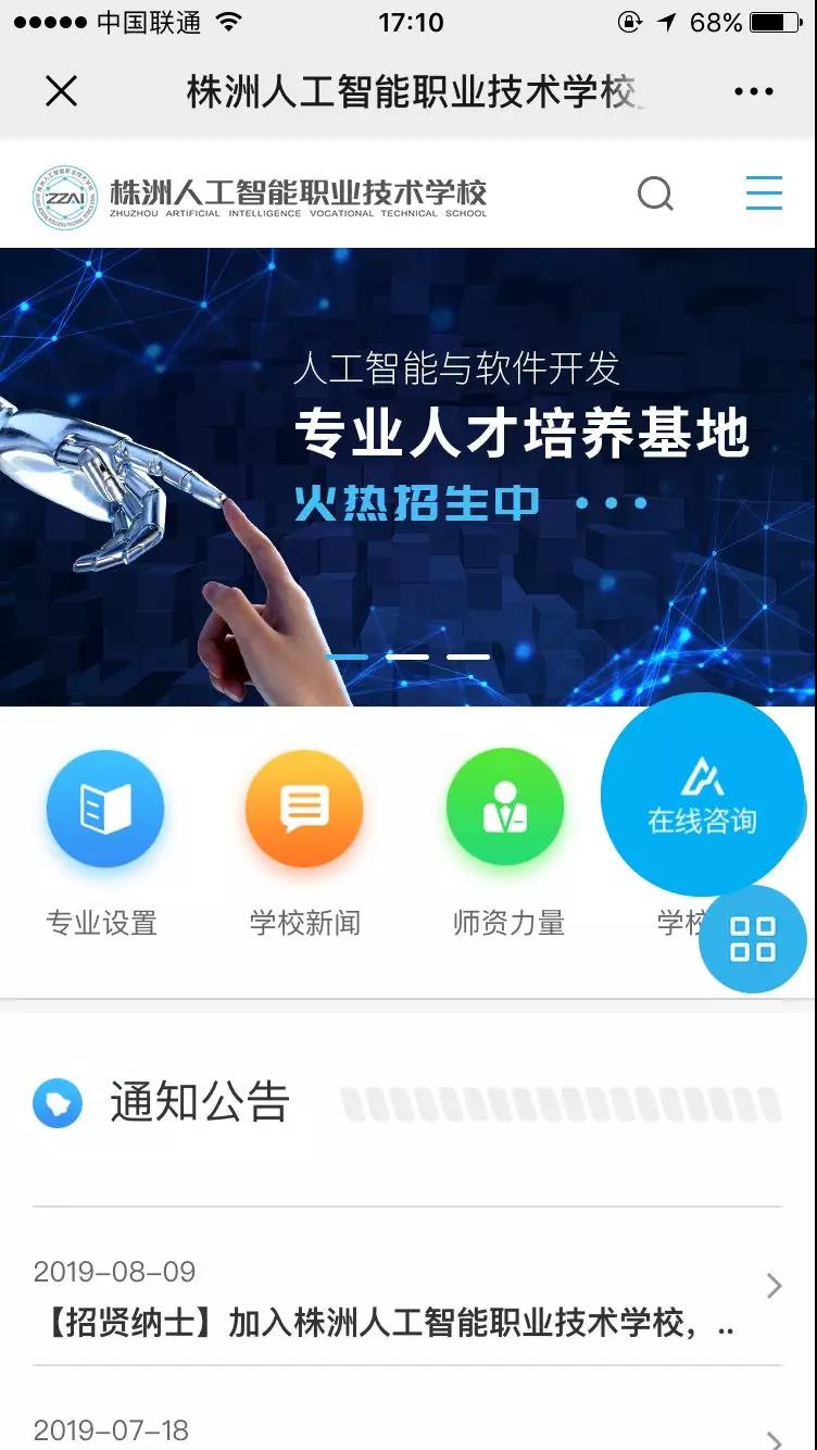 2019年初,客戶公司旗下另一所專門以人工智能與軟件開發技術為特色的職業技術學校——株洲人工智能職業技術學校成功創辦?;谛湃危x科長再次與競網合作搭建了該學校的定制化網站平臺。