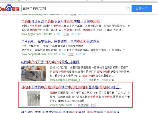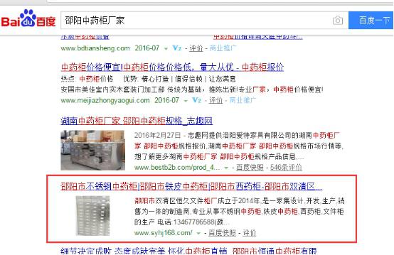 網站經過一段時間對的優化,已經由原來的零收錄上升到14條收錄了,客戶那邊所提供的關鍵詞在快照上面有了一定的排名效果:“邵陽中藥柜定制”“邵陽中藥柜廠家 ”“邵陽西藥柜”“邵陽文件柜”等關鍵詞位居百度首頁。
