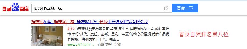 在修改之后的一個月,搜索長沙硅藻泥加盟、長沙硅藻泥廠家、長沙硅藻泥批發都是排名在第二頁了。目前是排名在第一頁。客戶表示非常感謝,之前都是搜索不到的,客戶說愿意多花一點錢來由我們管理,這樣子會讓網站的排名更好。