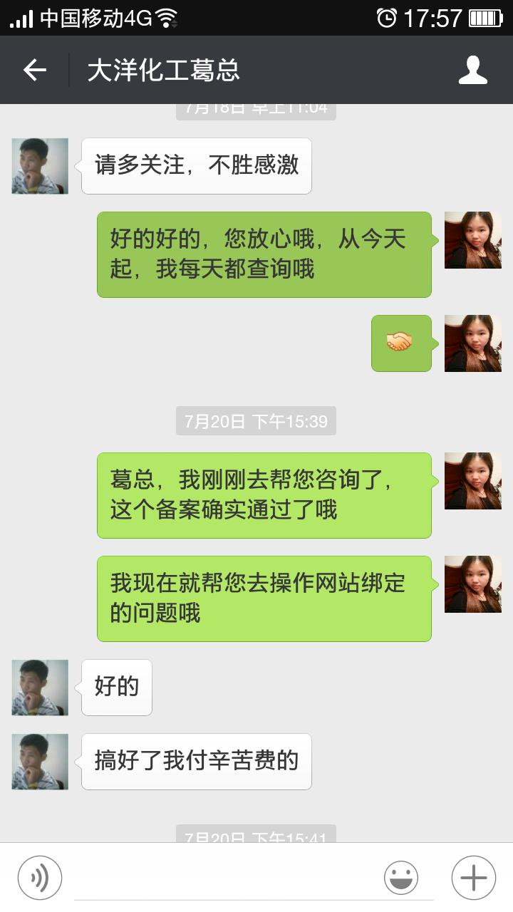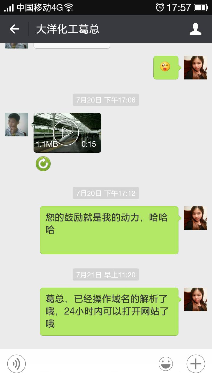 1000-2000的償還金。,能做的只是頻繁地電話的聯(lián)系,微信的聯(lián)系,QQ的聯(lián)系葛總,希望他們能重視域名這件事。當(dāng)葛總得知1000-2000元的償還金后頗有情緒,對(duì)企業(yè)的而言是成本的增加,競(jìng)網(wǎng)建站客服楊孟金將思緒重新整理,提議可以直接去競(jìng)網(wǎng)岳陽(yáng)分公司直接備案,再次注冊(cè)域,同時(shí),客戶葛總提出網(wǎng)站需優(yōu)化。對(duì)于葛總的提議,楊孟金自然是欣喜,終于能讓客戶重視起來,面對(duì)客戶的提出的修改建議,楊孟金結(jié)合自身的維護(hù)經(jīng)驗(yàn)提出了對(duì)應(yīng)的實(shí)施方案和修改方向,其中包括網(wǎng)站的優(yōu)化和推廣,備案通過后,在路途中的大洋溶劑化工廠葛總特地制作了一個(gè)感謝視頻,話語(yǔ)雖短,但對(duì)競(jìng)網(wǎng)客服的工作表達(dá)的深深地認(rèn)可。