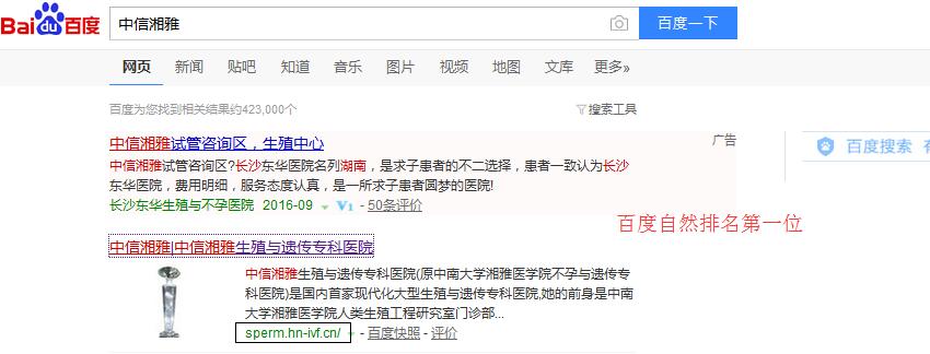 電話掛斷之后,我馬上根據客戶反映的情況進行了了解。經查詢,搜索引擎在2016年的5月份進行一次大規模的調整,調整之后給予網站權重較高的排名展現更多,而中信湘雅目前使用的官網是新網站,權重沒有老網站高,從而導致排名掉下去了。
