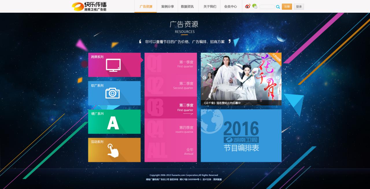 現在的網站多是摒棄了傳統的單方面傳遞式形式轉型為交互式網站,當用戶進入網站的時候就要讓用戶感覺到,他已經成為了我們網站的至尊客戶,可以享受到最貼心的服務。湖南衛視快樂傳播以90后、活潑時尚年輕人為主要目標群體,追求時尚、個性創新。因此網站在設計上參考了多數用戶的瀏覽閱讀習慣,從用戶角度出發,將每期的熱點和重點內容重點突出,,按照用戶群體的需求來排列展示內容。同時在交互式響應板塊設計上,通過顏色、點擊提醒欄目狀態的變化來達到醒目的效果。整個網站通過采用H5技術,使網站呈現時尚動態化,將展示的內容潛移默化的讓用戶記住。
