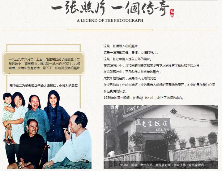 張海潮:在著手項(xiàng)目前,我閱讀了大量客戶的資料,發(fā)現(xiàn)毛家飯店發(fā)展歷程由一張1959年6月25日一張傳奇的照片延展開來,于是產(chǎn)生了用網(wǎng)站來延展整個故事的想法,突出文化背景和品牌口碑。主色調(diào)采用了比logo色亮2°的大紅色,這樣文化氛圍就更加濃郁,整體更為和諧。